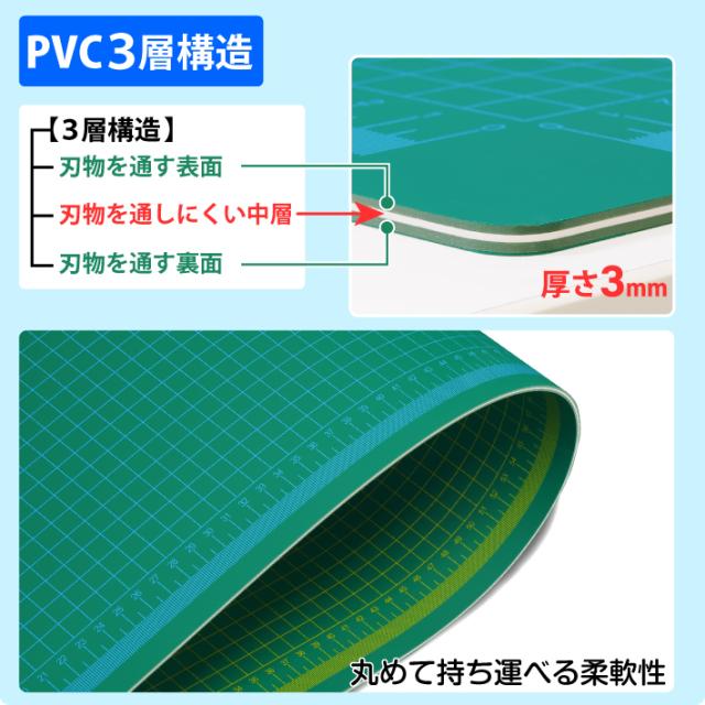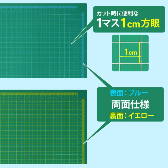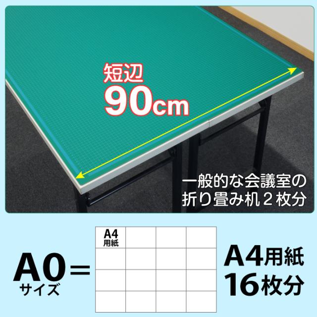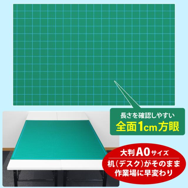 カッティングマット A0 サイズ 90cm x 120cm x 3mm 1cm方眼 特大 両面メモリ 業務用 工作 カッターマット大判 デスクマット 緑 グリーン 両面目盛り 切り出し