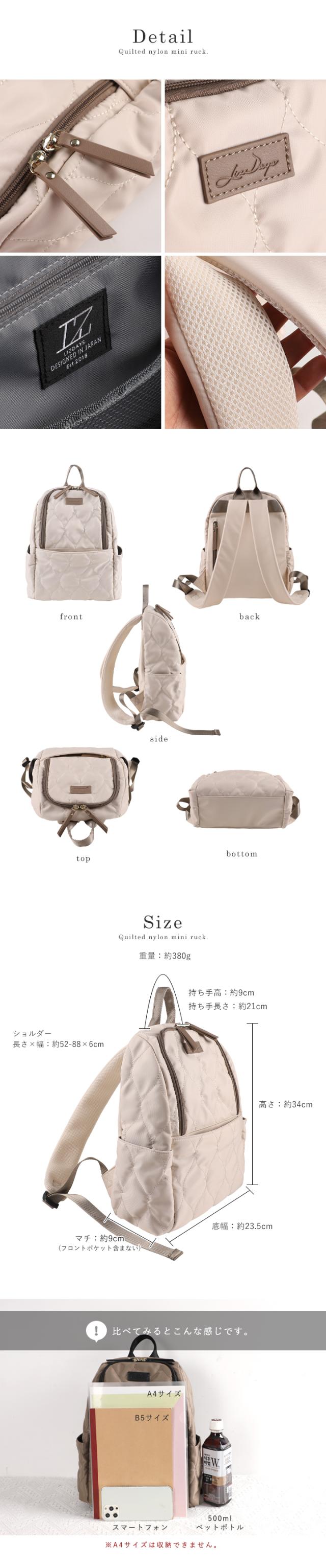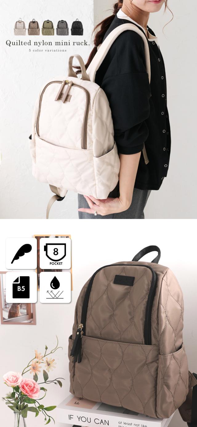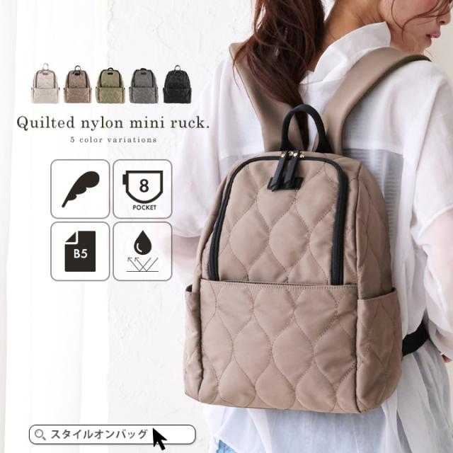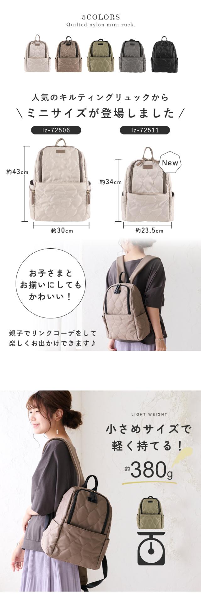 リュック レディース 小さめ 軽量 ナイロン ミニリュック 大人 可愛い キルティング リュックサック 軽い 背面ポケット セキュリティポケット 撥水 通勤 通学 ミニバッグ おしゃれ コンパクト B5 多収納 マザーズリュック LIZDAYS リズデイズ 【lz-72511】