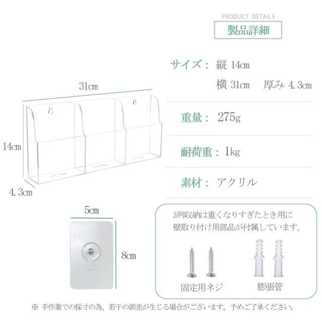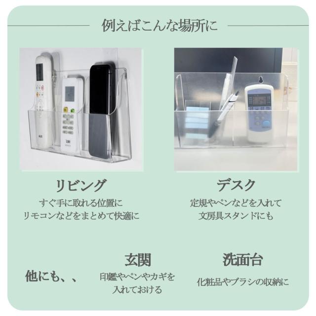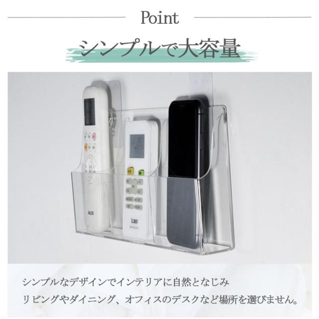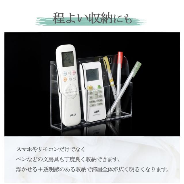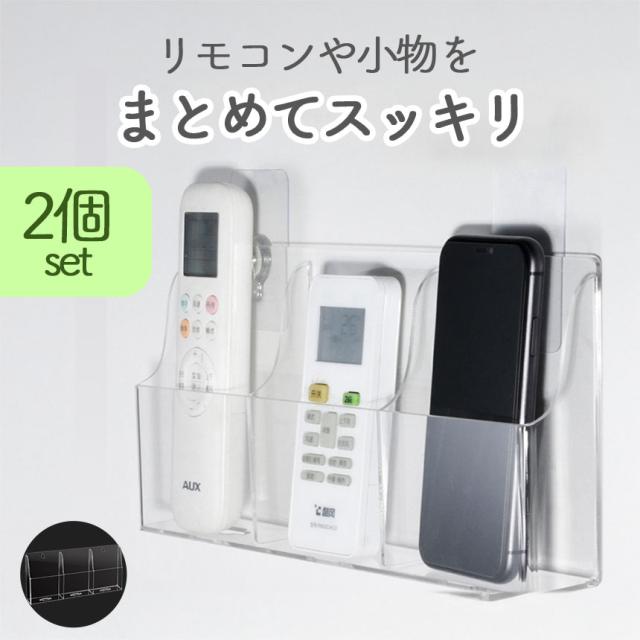 リモコンホルダー アクリル 3列収納 2点セット 壁掛け 充電電話ホルダー メディア 収納ボックス オフィス用 リモコンスタンド リモコン収納ボックス シンプル おしゃれ エアコン ケース TV スマートフォン 整理 ラック 小物入れ サニタリー デスク オフィス 玄関 洗面台