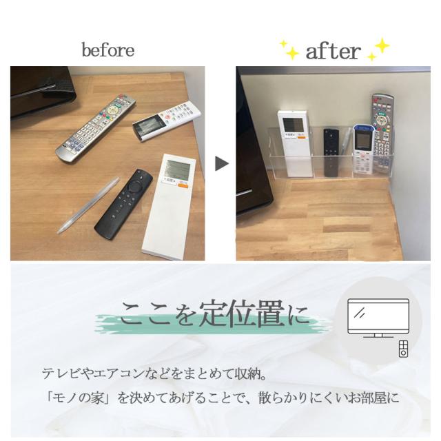 テレビやエアコンなどのリモコンをまとめて収納。「モノの家」を作ってあげることで、散らかりにくいお部屋作りに