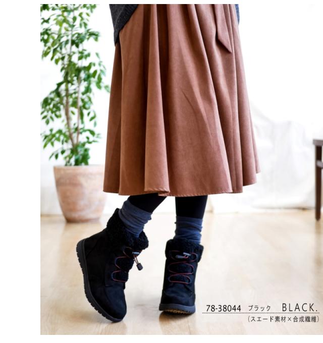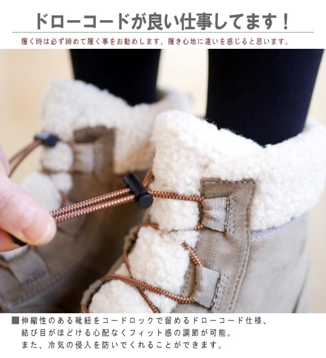 靴中はオールフリース素材で足元ポカポカ!ドローコードをキュッと締めれば冷気も遮断出来て