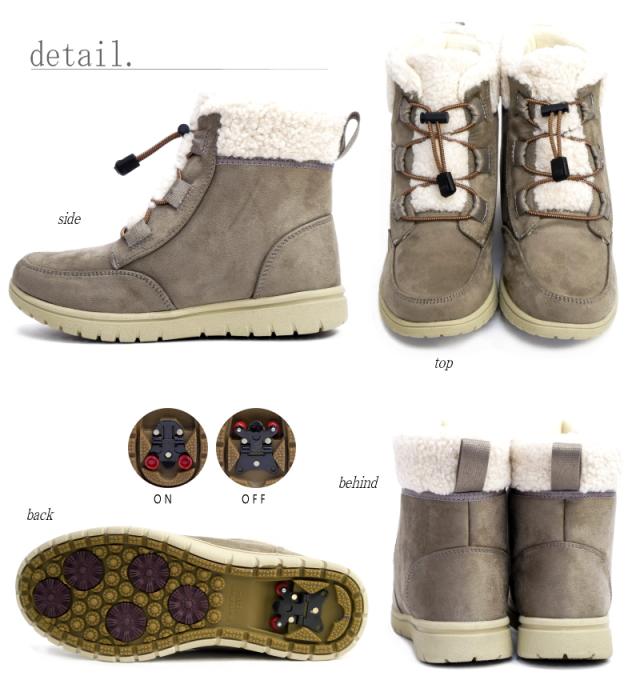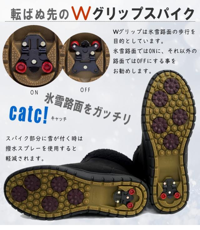 氷雪路面をがっちりキャッチ!Wグリップスパイク仕様・暖かボア・ショート丈スノーブーツ