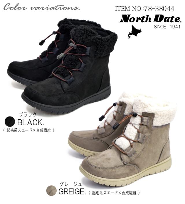 North Date ノースデイト スノーブーツ ボア ショート丈 レディース グリップスパイク ガラス繊維 フリース ドローコード 防滑 耐水 生活防水 防寒 北海道 3e 冬 雪 氷