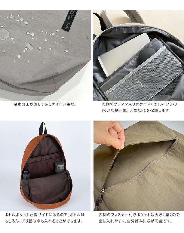 送料無料 ソレイユ SOLEIL ライトリー デイパック 【 リュックサック リュック バックパック ナイロン 軽量 旅行 レディース メンズ 大人 撥水 軽い 無地 おしゃれ かっこいい シンプル カジュアル 黒 通勤 通学 大学生 高校生】