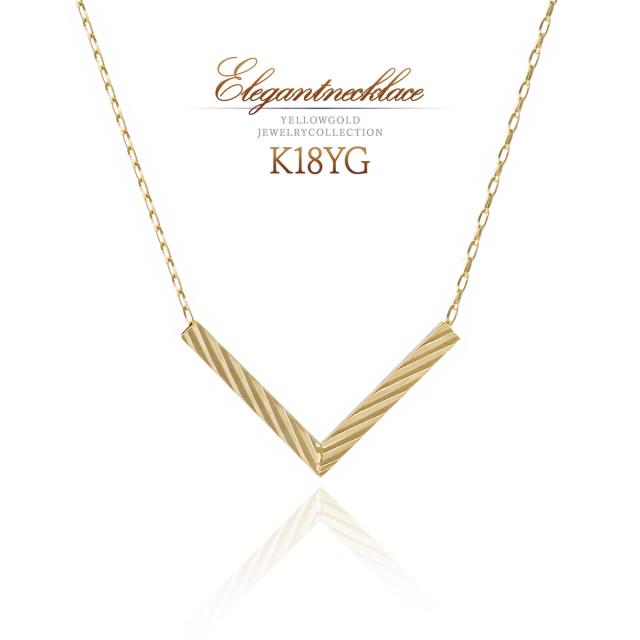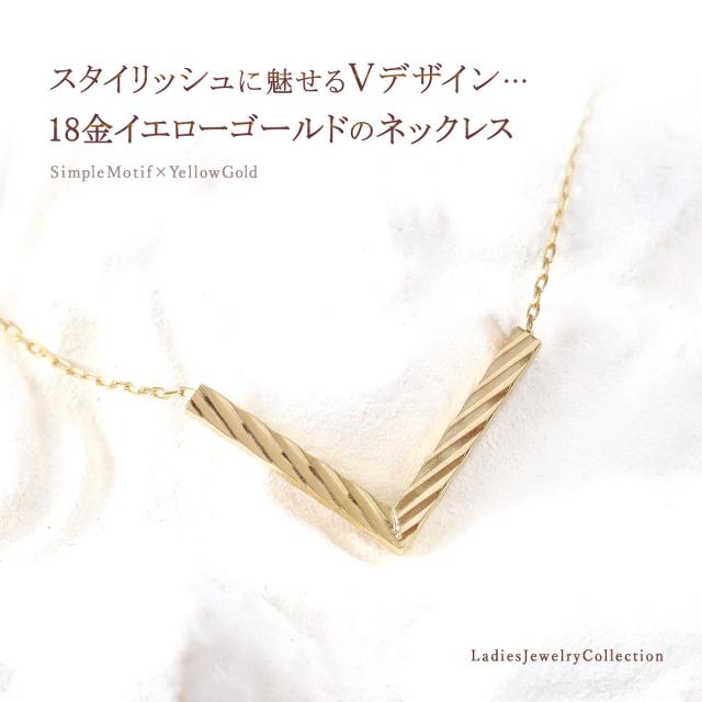 ネックレス 18金 レディース シンプル V字 おしゃれ 18K イエローゴールド K18 地金だけ アクセサリー プレゼント 就職祝い 誕生日 Vの字 V字型 Vライン V字ネックレス 地金のみ スキンジュエリー 大きめ 大ぶり 大振り K18YG 本物 女性 彼女 格好良い ホワイトデー お返し