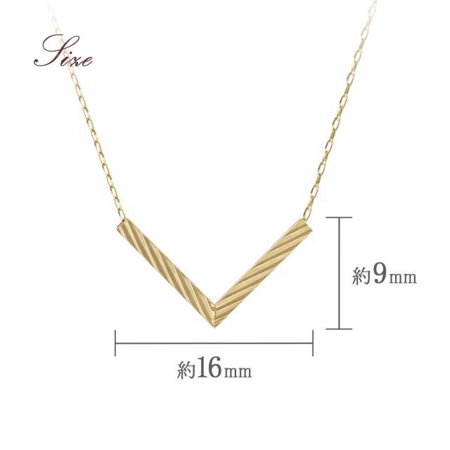 | サイズ | ・V字モチーフ:約9mm×約16mm、厚み約1.5mm ・チェーン:約40cm(約36cm部分にアジャスターカン付き) |