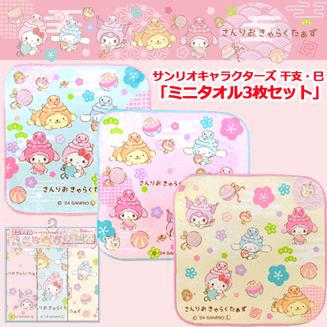 サンリオグッズ(サンリオキャラクターズ干支・巳「ミニタオル3枚セット」)2025干支グッズ 巳年グッズ ミニタオル 開運 お守り ハローキティ マイメロディー シナモンロール
