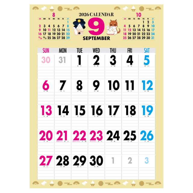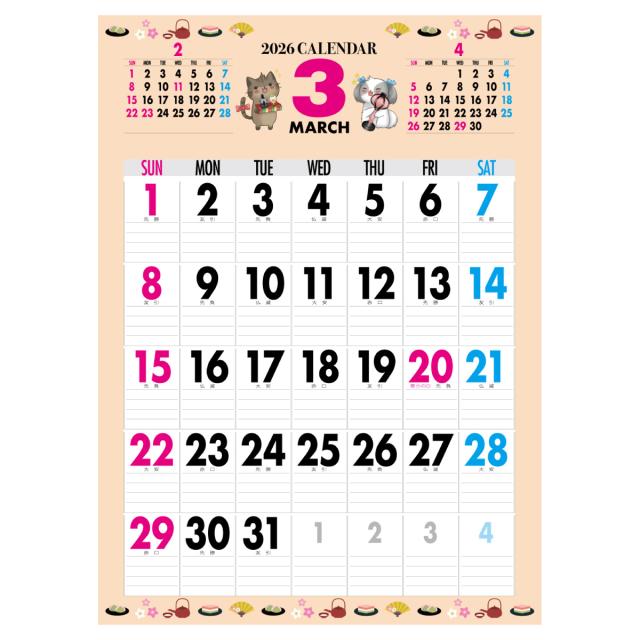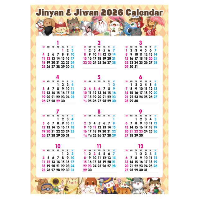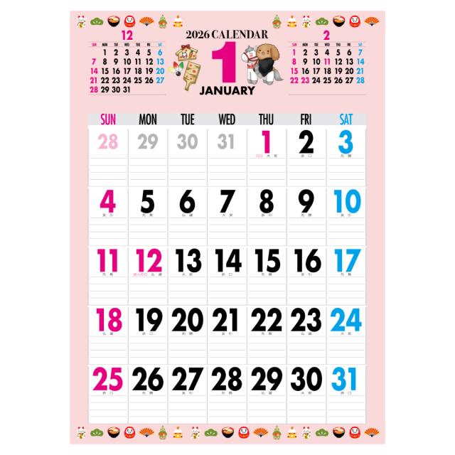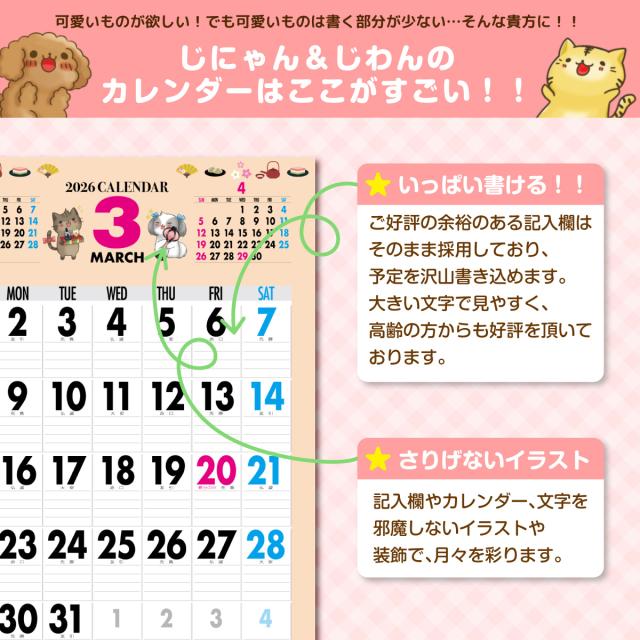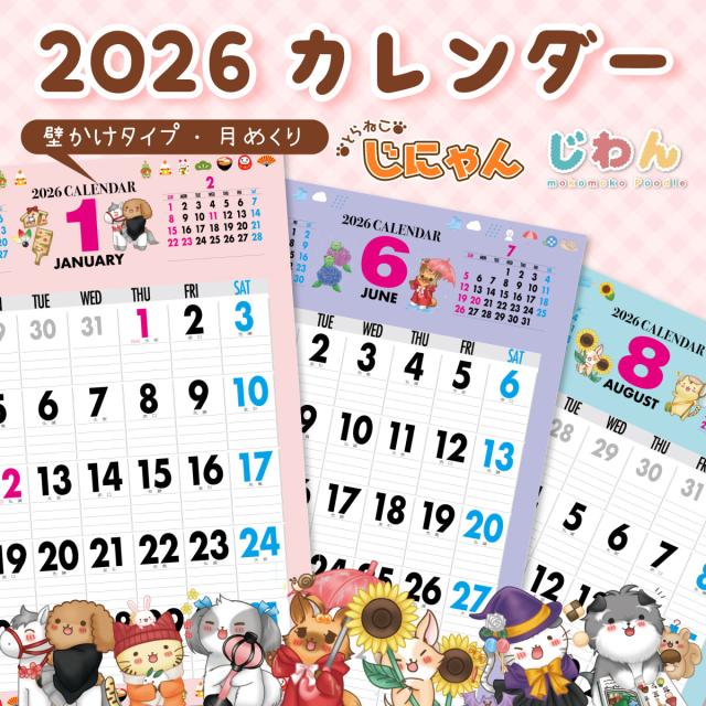 2026年 カレンダー 2026 壁掛け 2026年度版 壁掛けカレンダー シンプル キャラクター かわいい ネコ ねこ 猫 じにゃん イヌ いぬ 犬 じわん おしゃれ b3 calender