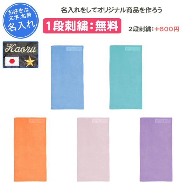刺繍加工をしてオリジナル商品をつくちゃおー♪ 卒団、記念品、プレゼントにおすすめです!! 1段刺繍代:無料 2段刺繍代:+600円(税込) 1個ロゴ刺繍代:+300円(税込) ※ロゴ刺繍は、文字の糸と同色になり、刺繍文字の後ろに入ります。なお、日本国旗のみ写真のように赤と白の刺繍となりますのでご注意ください。 ※1段の文字数は8文字までとなります。 吸水性、速乾性に優れたウルトラマイクロファイバーを使用。生地が薄く、たたんでもかさばらない為、もち運びにも便利。 サイズ:40cm×100cm 原産国:韓国 カラー:BL/ブルー、MINT/ミント、OR/オレンジ、PIN/ピンク、VIO/バイオレット