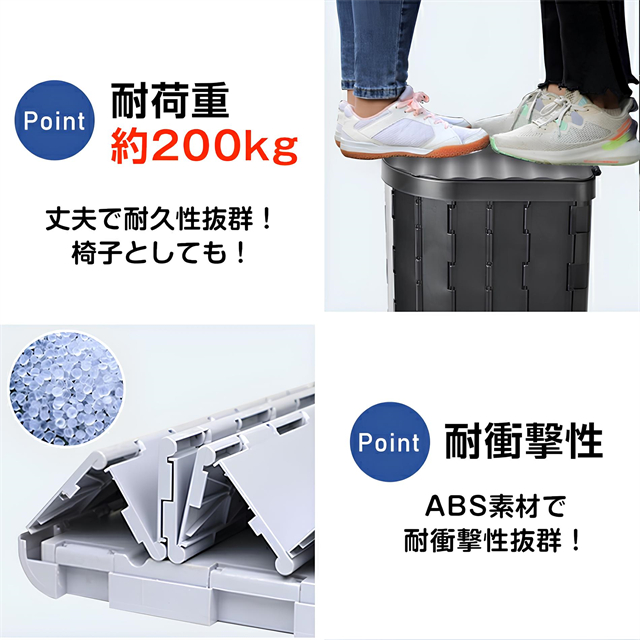 改良版したポータブルトイレは、ぴったりと閉まる蓋付き、密閉性が高いので、気になる臭い漏れがなりません。また耐久性に優れたABSプラスチックで作られており、耐荷重約150kgと老若男女幅広く使用可能。