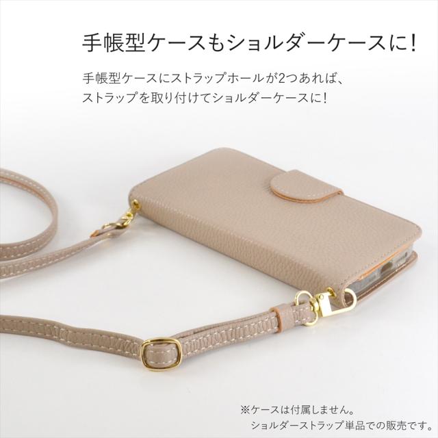 2点で留めるタイプのショルダーケースに使えて、お手持ちのスマホケースやポーチ、パスケースなどにホールなどあればフックで簡単に付けられるショルダーストラップです!