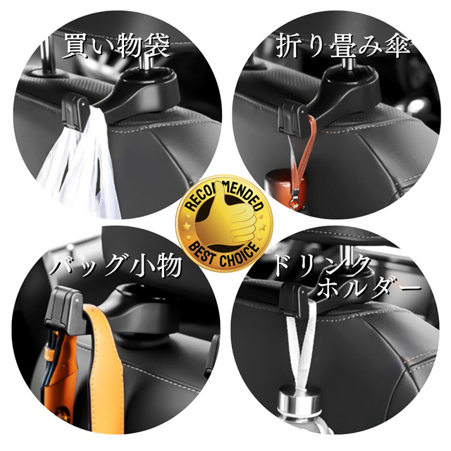 車用 フック 2個セット 荷物フック 運転席 助手席 おしゃれ かわいい 傘 バッグ ゴミ袋 引っ掛け シート 側面 ヘッドレスト 車内 取り付け 小さい 収納 目立たない コート ハンガー コンビニ 荷物掛け 車フック 車用ハンガー 車用品