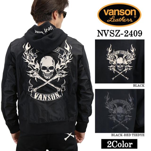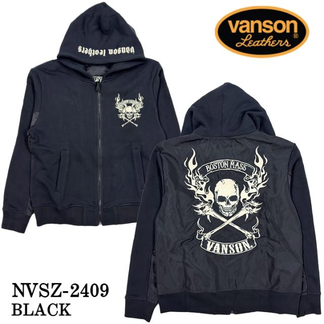 VANSON バンソン 裏毛ナイロン切り替え F/Zパーカー メンズ nvsz-2409
