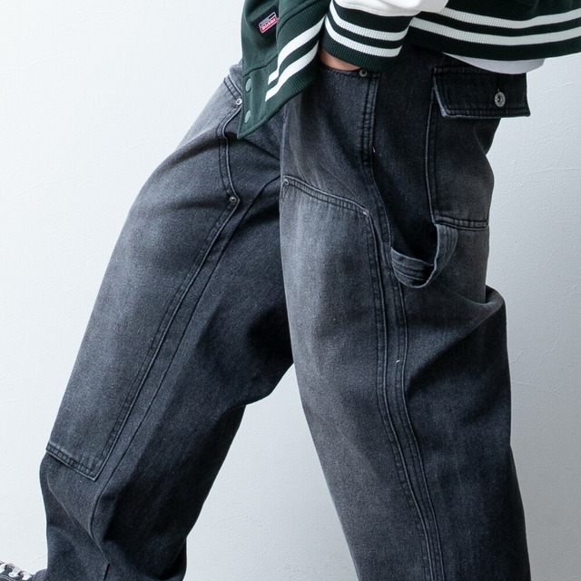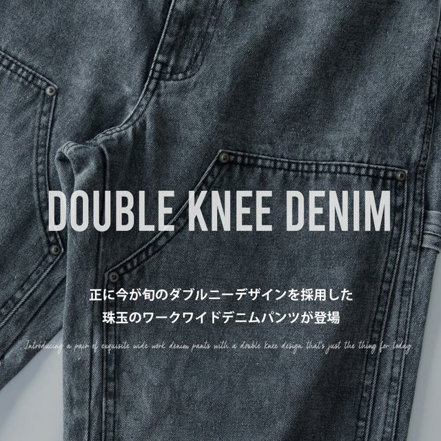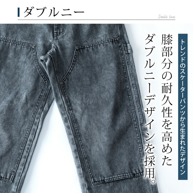 ワイドパンツ メンズ デニム ゆったり ダブルニー ワークパンツ ワイドデニム ワイド パンツ ジーンズ ルーズフィット A302 太め カジュアル ブラック 全3色