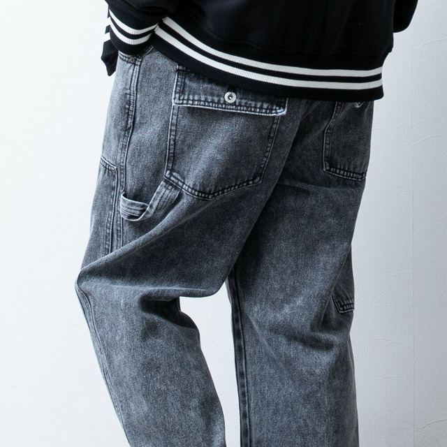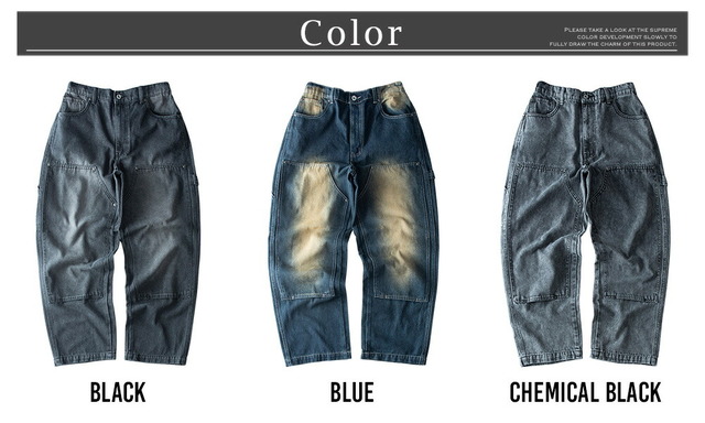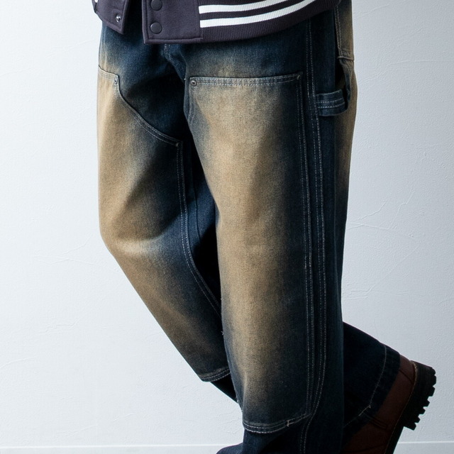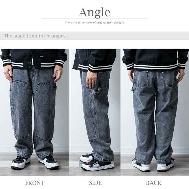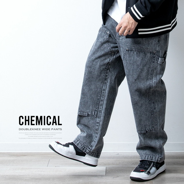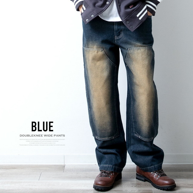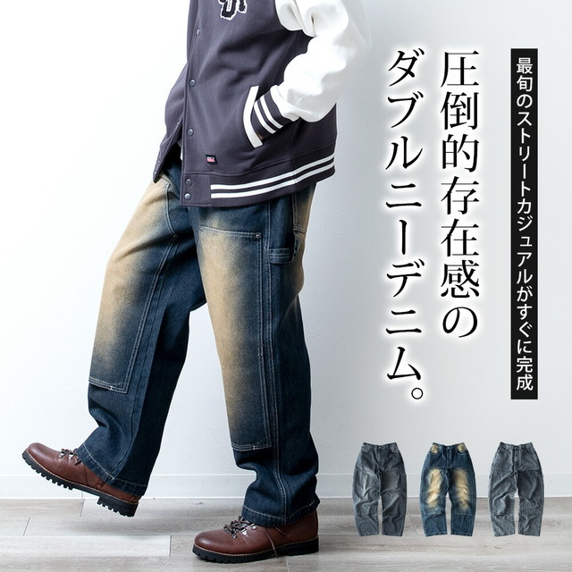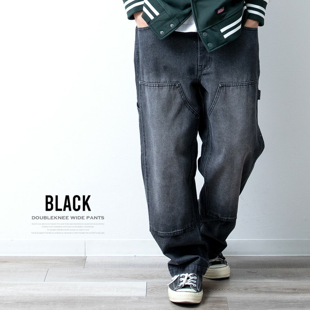 ワイドパンツ メンズ デニム ゆったり ダブルニー ワークパンツ ワイドデニム ワイド パンツ ジーンズ ルーズフィット A302 太め カジュアル ブラック 全3色 ストレートパンツ アメカジ デニムパンツ プレゼント ケミカルウォッシュ