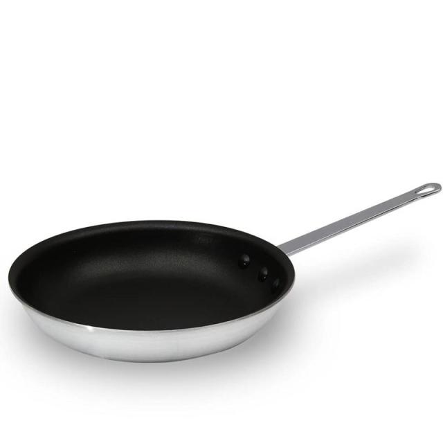 フッ素樹脂コーティングフライパンはさまざまな調理法で用いられます。アルミフライパン(表面フッ素樹脂コーティング加工)は、さっと熱を通すような調理に最適です。 またアルミ製のフッ素樹脂コーティングフライパンは、軽く扱い易いのも特長です。