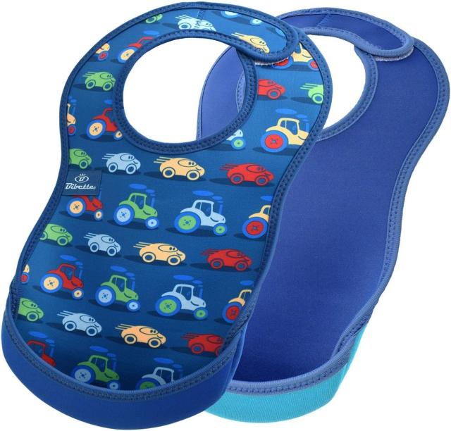 ビベッタ お食事スタイ 洗濯 機で洗える 乾燥機 ウェットスーツ 食事エプロン 離乳食 ウルトラビブ 2枚入り カーズ/デニムブルー