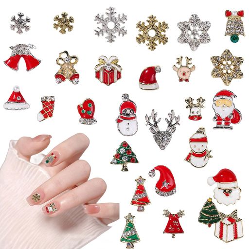【クリスマスネイルパーツ】可愛いサンタクロース、雪だるま、雪の結晶、クリスマスツリー、トナカイ、ベルなどのネイルパーツがセットになって登場!クリスマスネイルを作りたい時に欠かせない。