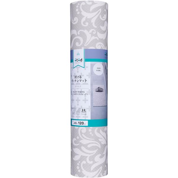 商品仕様: アール 拭けるキッチンマット 45×120cm ダマスク LK-102