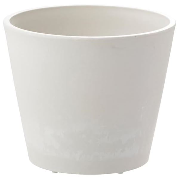 5号のスリット入りポットをそのまま入れて、プランターカバーとして楽しめる。植物入りのポットが、”ドレスアップ”され見栄えも気分も上がる。内側底面にリブを設けて、排水に浸からない構造。付属の止水栓を外せば、直接土を入れて植木鉢としても使用可能。