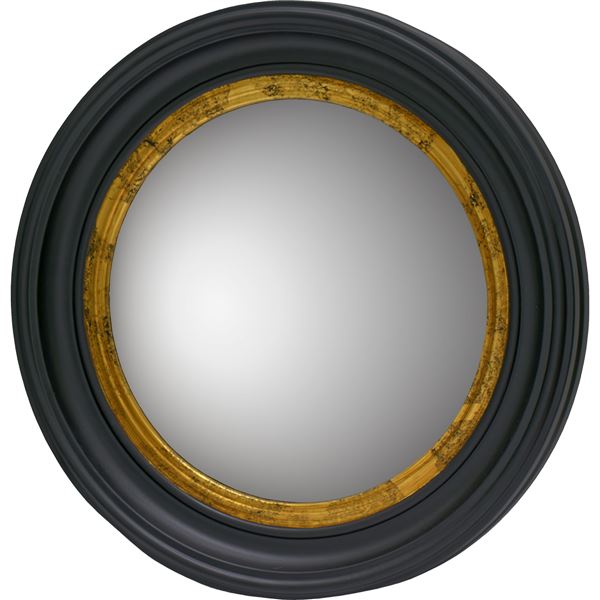 [コンベックス]ミラーは、マットブラックのフレームとアンティークゴールドのプロフィールで装飾された、凸面鏡を採用したユニークなミラー。ディスプレイやユニークなインテリアプランに最適。広角に映し出すことが可能なので、モニター用途にも!