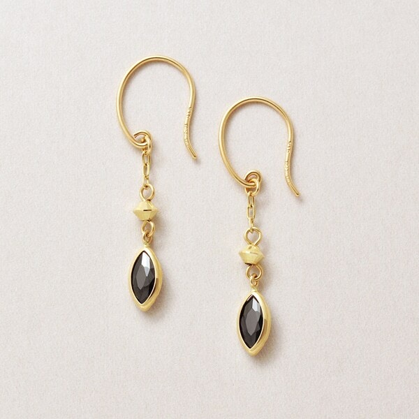イエローゴールドのワイヤーピアス。ブラックカラーのキュービックジルコニア使用しています。