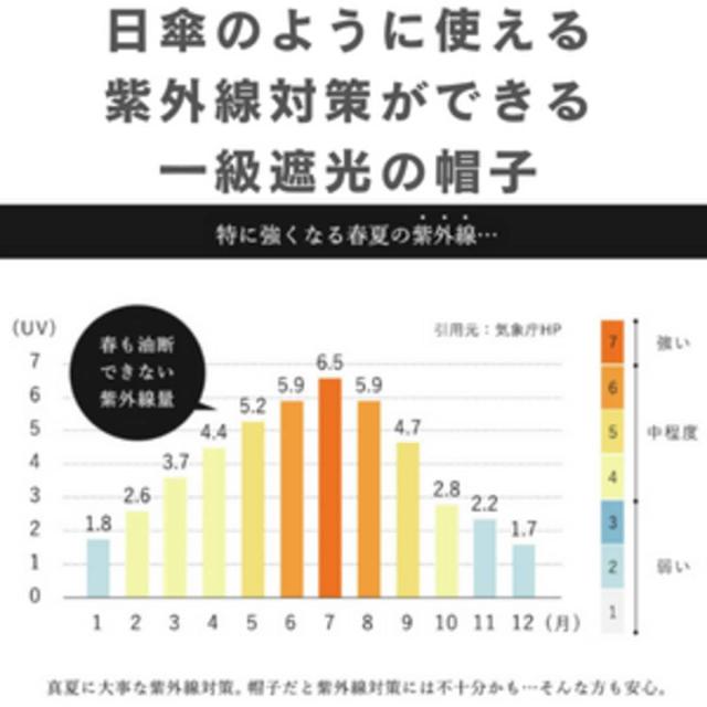 日傘で使われる、一級遮光・UVカット率99.9%の生地をつば部分に挟んでいます。