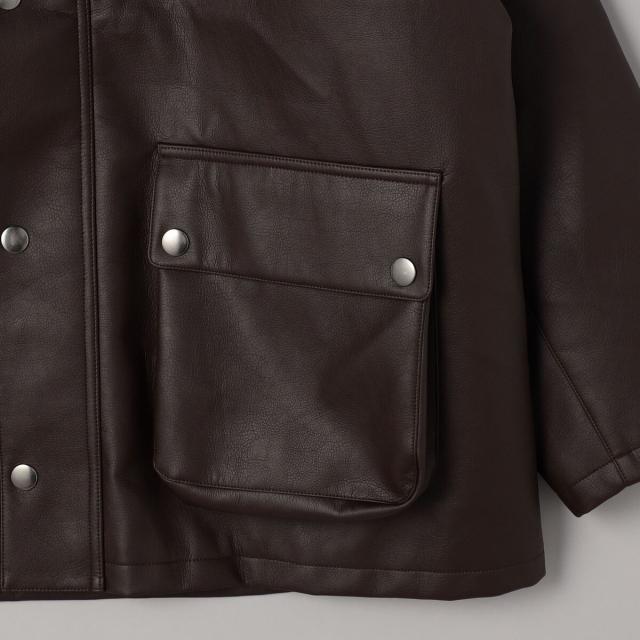 襟元のコーデュロイ切り替え×レザーライク調で大人カジュアルなハンティングジャケット