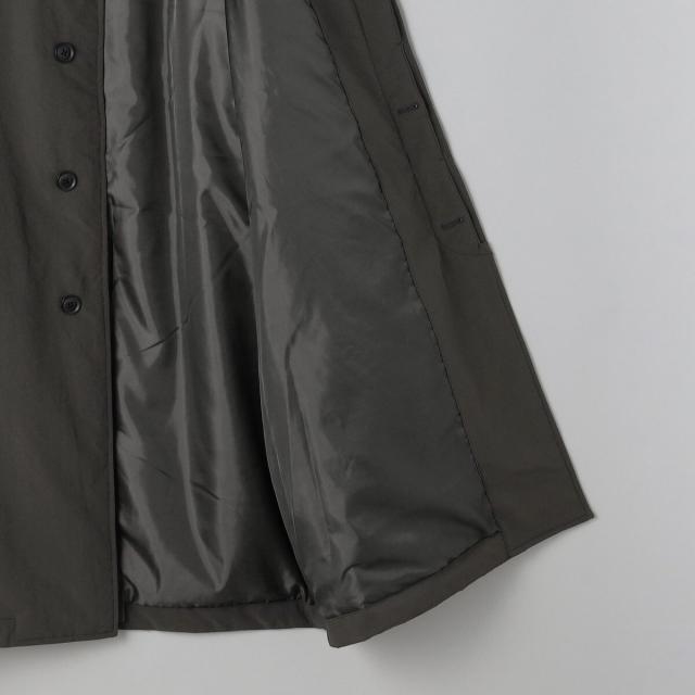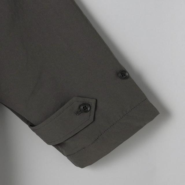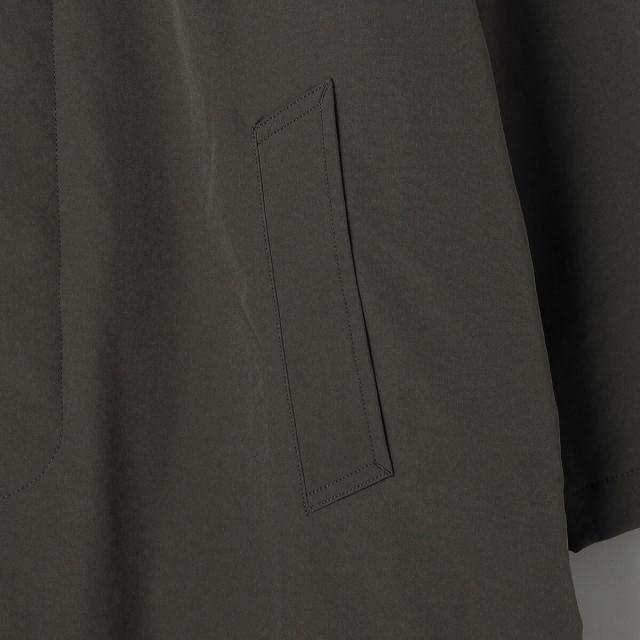 前立ては比翼仕立てになっている為、よりすっきりとした印象に。襟元はスタンドカラーにもなり、シンプルなデザインながらもトレンドライクな印象で、様々なテイストのスタイリングにも重宝します。