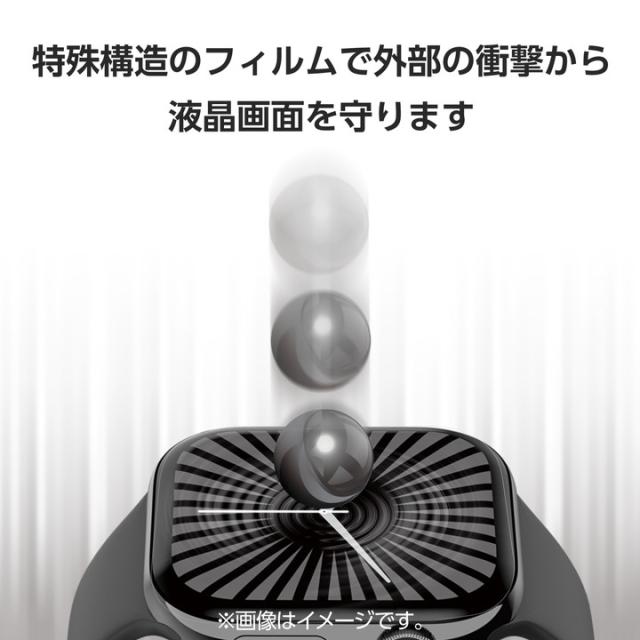反射を軽減するAR加工を施した、衝撃吸収、超透明、指紋防止タイプのApple Watch用画面保護フィルムです。光の映り込みに邪魔されず、快適に動画視聴を楽しめます。貼り付けの際に、ずれやすいフィルムをぴったりと位置合わせできる貼り付けツール付きです。