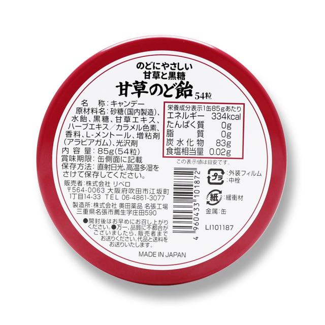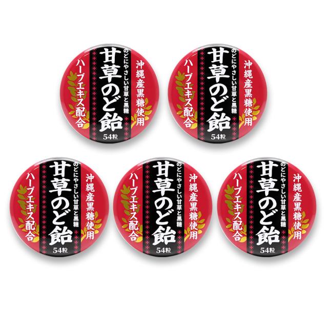 甘草のど飴 缶入 54粒 ×5缶 沖縄産黒糖使用 ハーブエキス配合 日本製