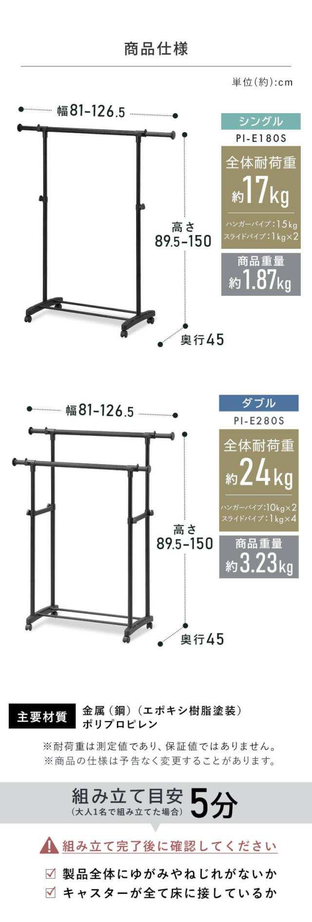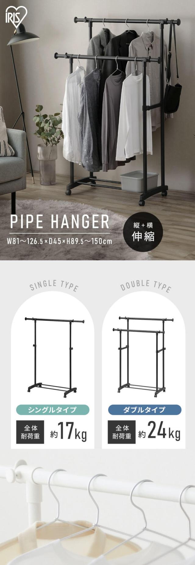 ハンガーラック 2段 ダブル 1段 シングル パイプハンガー 洋服掛けラック おしゃれ 縦横 伸縮 ロングコート 子供服 アイリスオーヤマ PI-E280S E180S *