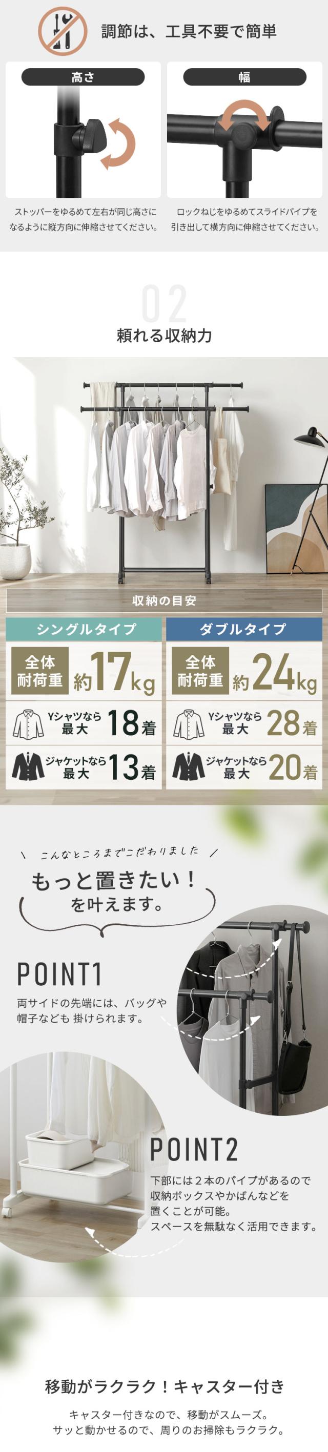 耐荷重:24kg、Yシャツなら最大:28着、ジャケットなら最大:20着