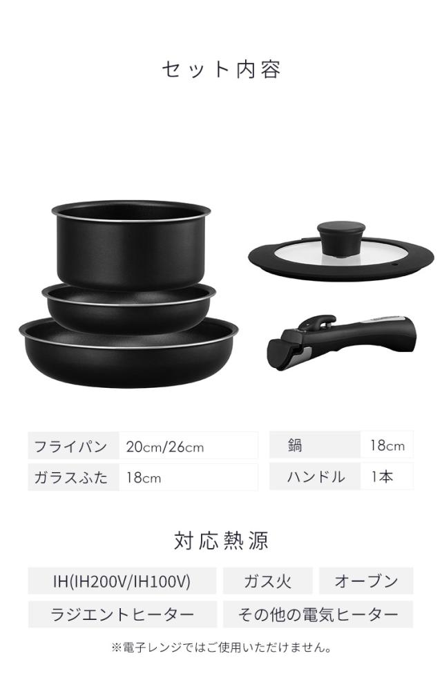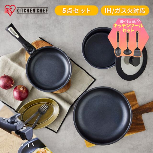 フライパンセット フライパン鍋セット IH ガス火 アイリスオーヤマ 取っ手が取れる 高耐久4層構造 耐久性 こびりつきにくい フライパン 20cm 26cm 鍋 18cm ハンドル ふた PFOA PFOS 不使用 安心 ダイヤモンドコートパン 5点セット NTF-SEI5 *