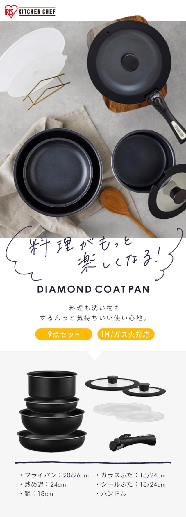 フライパンセット フライパン鍋セット IH ガス火 アイリスオーヤマ 取っ手が取れる 高耐久4層構造 耐久性 こびりつきにくい フライパン 20cm 26cm 鍋 18cm 炒め鍋 24cm ハンドル ふた PFOA PFOS 不使用 安心 ダイヤモンドコートパン 9点 NTF-SEI9 *
