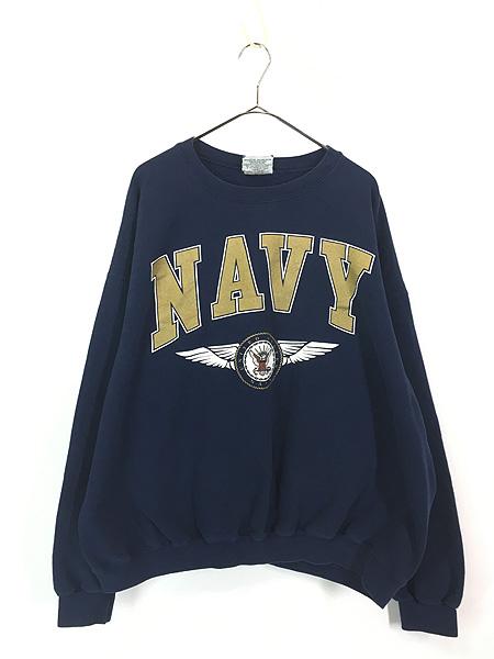 古着 90s USA製 Lee 「NAVY」 ゴールド ロゴ ミリタリー スウェット トレーナー XL