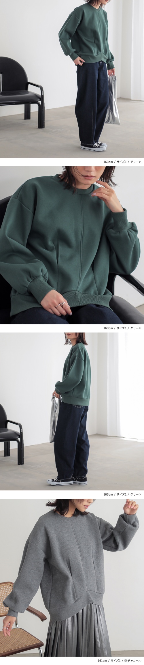 | staff:Q/159cm B78 W62 H91 【普段着用】 Tops: S/M Bottoms: S/M | 【1】 袖丈:手首位 着丈:ヒップにかかる位 腕周り:ややゆったり バスト:ややゆったり 全体:スッキリ 厚手の生地ですが、ウエストのタックラインでスッキリときれいに着用できました。 【2】 袖丈:手の甲真ん中位 着丈:ヒップ真ん中より下位 腕周り:ゆったり バスト:ゆったり 全体:ゆったり ゆったりと楽に着用できました。 私の場合は、1を選びます。 |
