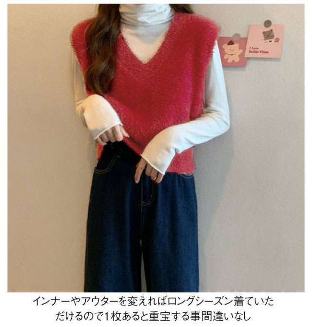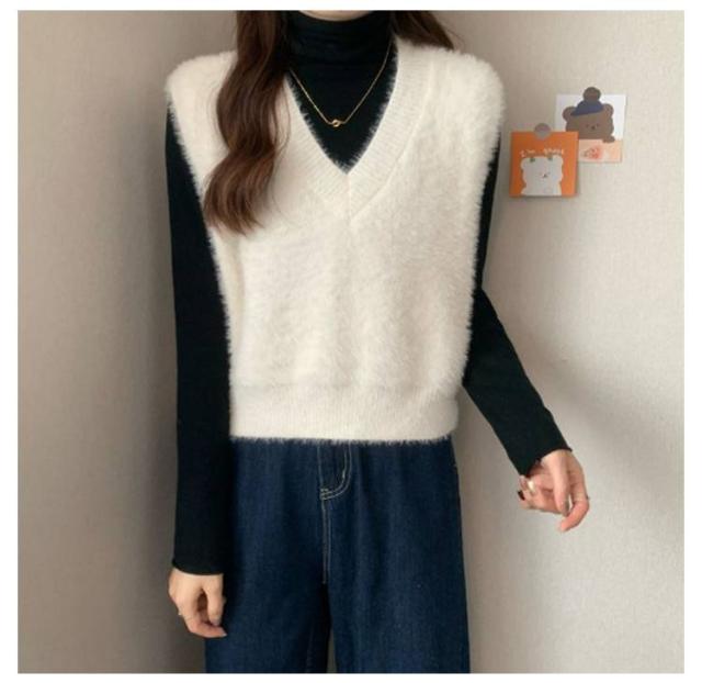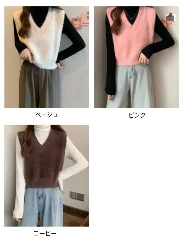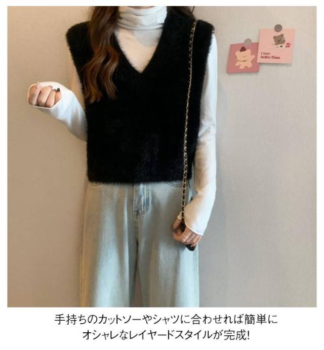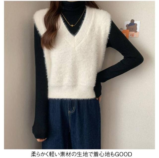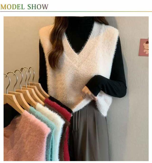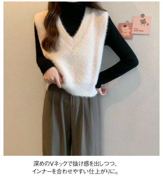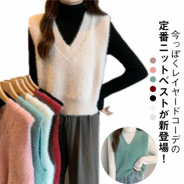 秋冬 ニットベスト シャギーニット ふわふわ トップス シャギーニット レディース 重ね着 プルオーバー シャギーベスト ノースリーブ お洒落 きれいめ お洒落 もこもこ レイヤード風 柔らかい