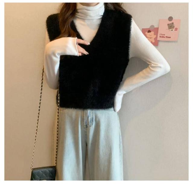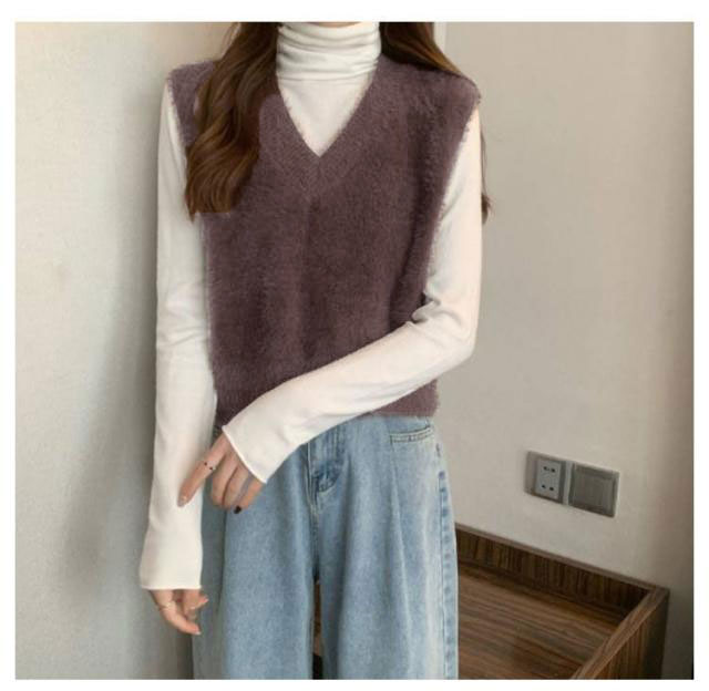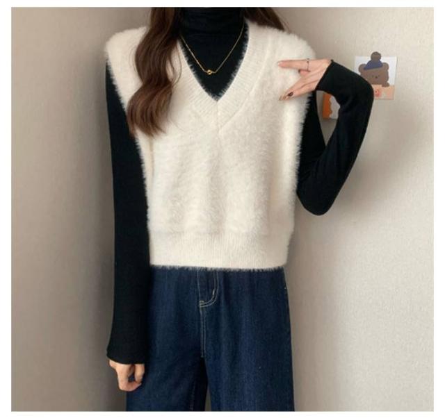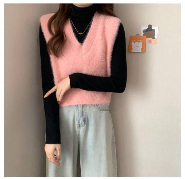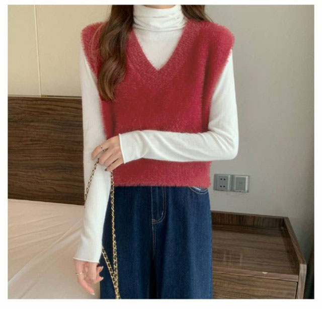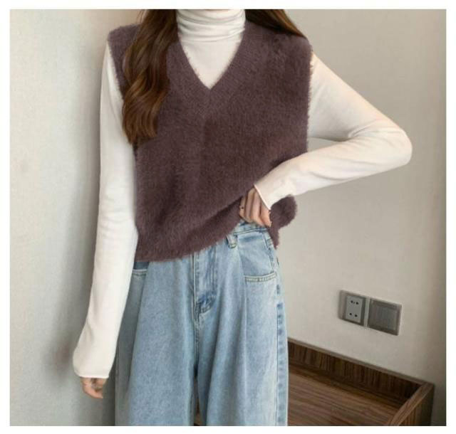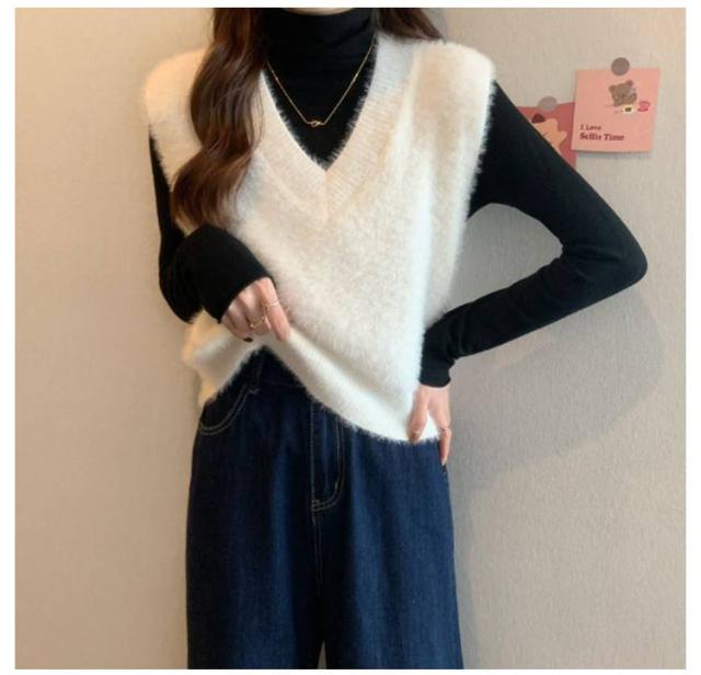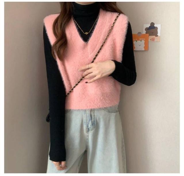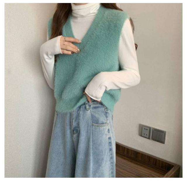 秋冬 ニットベスト シャギーニット ふわふわ トップス シャギーニット レディース 重ね着 プルオーバー シャギーベスト ノースリーブ お洒落 きれいめ お洒落 もこもこ レイヤード風 柔らかい
