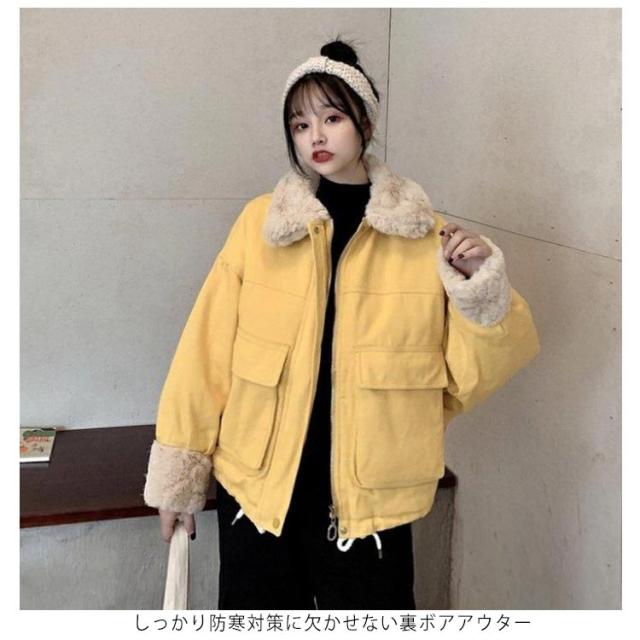 | ふわふわファー付き裏ボアジャケット 大きなポケットが便利でオシャレ度アップ ふんわり感たっぷりなファーが魅力的 しっかり防寒対策に欠かせない裏ボアアウター 厚手の裏ボア生地を使用し、暖かさを保つ | |