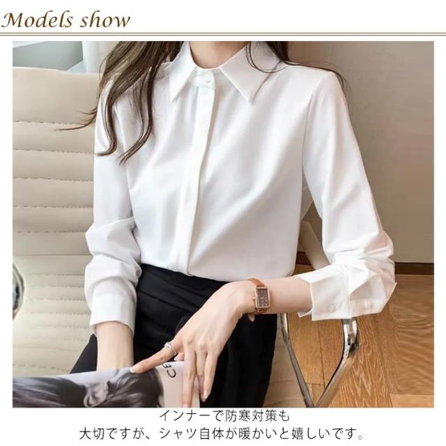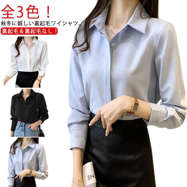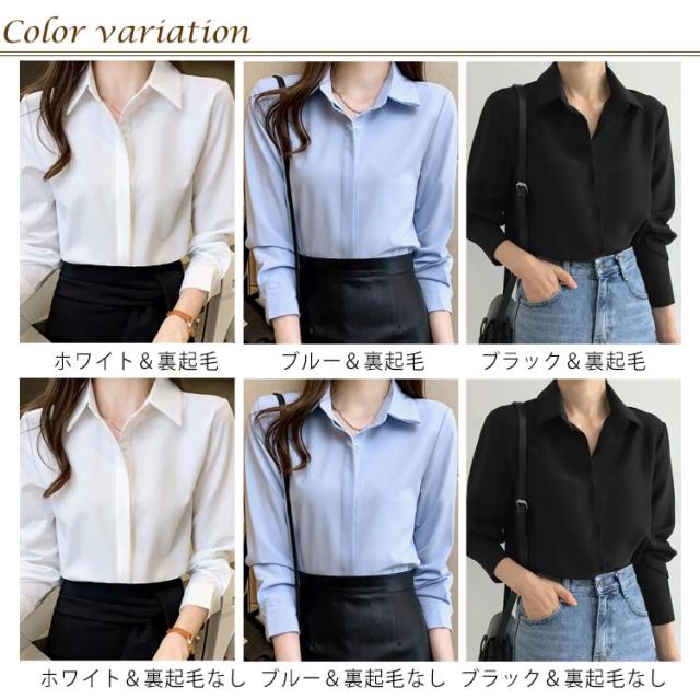 シャツ インナー ワイシャツ 白シャツ レディース シンプル 長袖 シャツ スリム yシャツ 無地 おしゃれ 隠しボタン シワになりにくい ブラウス トップス オフィスシャツ 裏起毛シャツ 形態安定 暖かい 秋 冬 OL 事務 フォーマル
