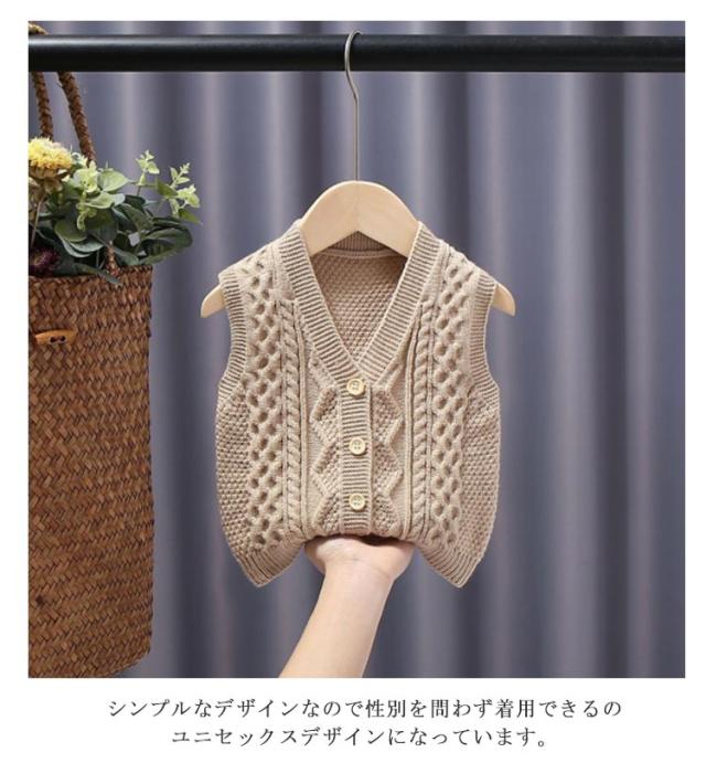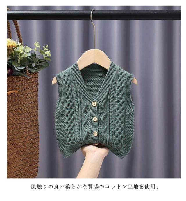 ニットベスト 前開き Vネック ケーブル編み 男の子 ベビー服 ケーブルニット キッズ 秋 女の子 シンプル ベスト 冬 暖かい 子供服 無地 ベスト 可愛い 通学 通園 インナーベスト 防寒 保温 ニットトップス 柔らかい 70 80 90 100 110 120 130