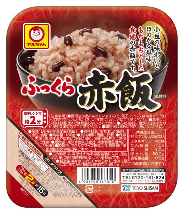 説明 商品紹介 主食にも間食等にもなりうる和の簡便食品「ふっくら赤飯」。厳選した米国産もち米を使用し、もち米と小豆をふっくら蒸しあげたお赤飯です。 ほんのり塩味が付き、おいしさを引き立てます。着色料を使用せず、小豆の煮汁だけで色付けした自然の色です。 電子レンジで加熱するだけで、簡単に召し上がることができます。 湯せんで調理する場合は、沸騰させた湯の中にフィルム(ふた)をはがさず底面を下にし入れ、鍋のふたをせずに約15分間加熱してください。 原材料・成分 もち米(米国産)、小豆、食塩