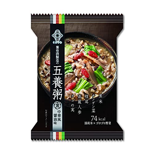 原材料:精白米(国産)、チンゲン菜、黒米(国産)、エキス(チキンエキス、ほたてエキス、酵母エキス)、しょうゆ、おろししょうが、クコの実、でん粉、食塩、ごま油、たん白加