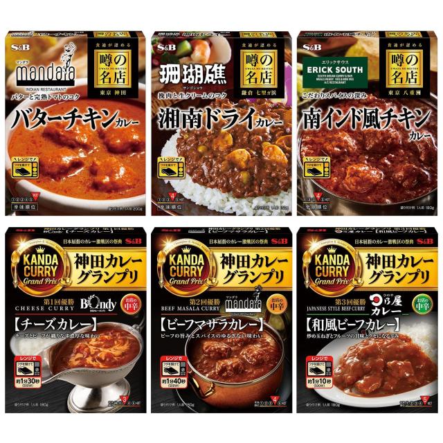 有名店監修の「噂の名店」シリーズ&「神田カレーグランプリ」シリーズの人気レトルトカレー6種セットです。