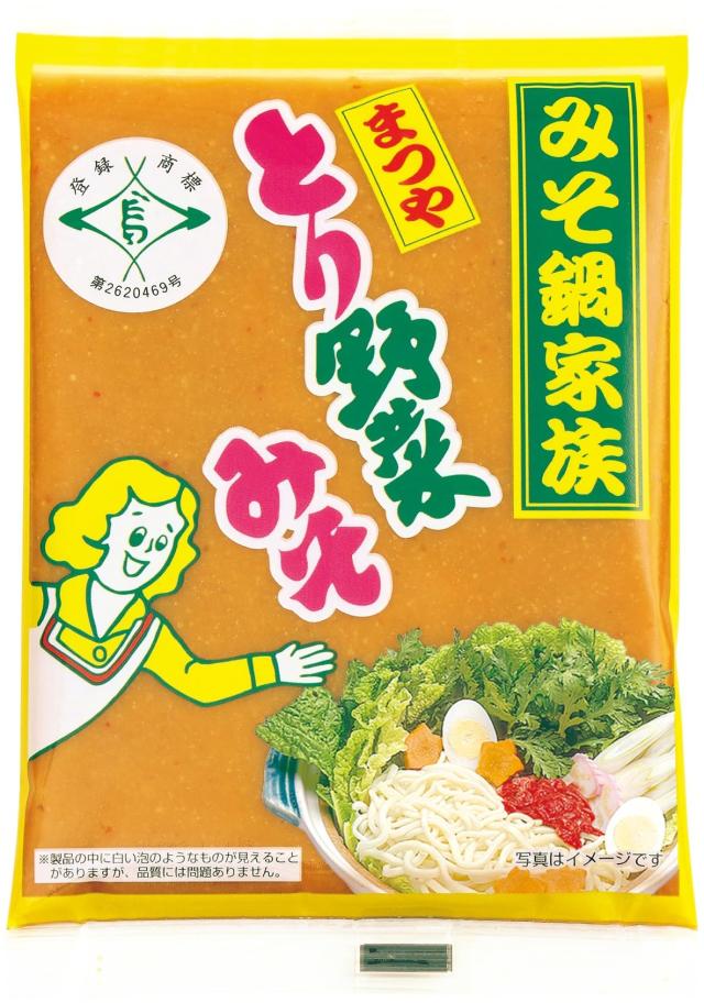 説明 商品紹介 鍋と言えば、まつやの「とり野菜みそ」と必ず名前があがるほど、石川県で親しまれている味噌鍋。大豆と米麹から作る味噌に香辛料などを混ぜ合わせ、現代人にも好まれるようにアレンジした、まつやオリジナルのとり野菜みそです。野菜や栄養をたっぷり摂るという意味から「とり野菜みそ」と名付けました。 いろいろな食材と合いますので、肉・魚介類、季節の野菜やきのこなどたっぷり入れてお召し上がりください。また、鍋を召し上がった後には、麺類を入れたり、ご飯を入れてぞうすいにしても絶品です。 原材料・成分 米みそ(国内製造)、醸造調味料、砂糖、チキンオイル、魚介エキス、食塩、チキンエキス、香辛料/ 酒精、調味料(アミノ酸等)、(一部に大豆・鶏肉・ゼラチンを含む)