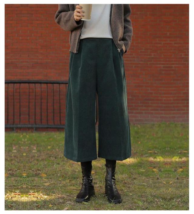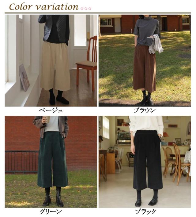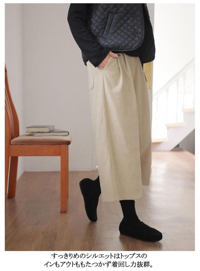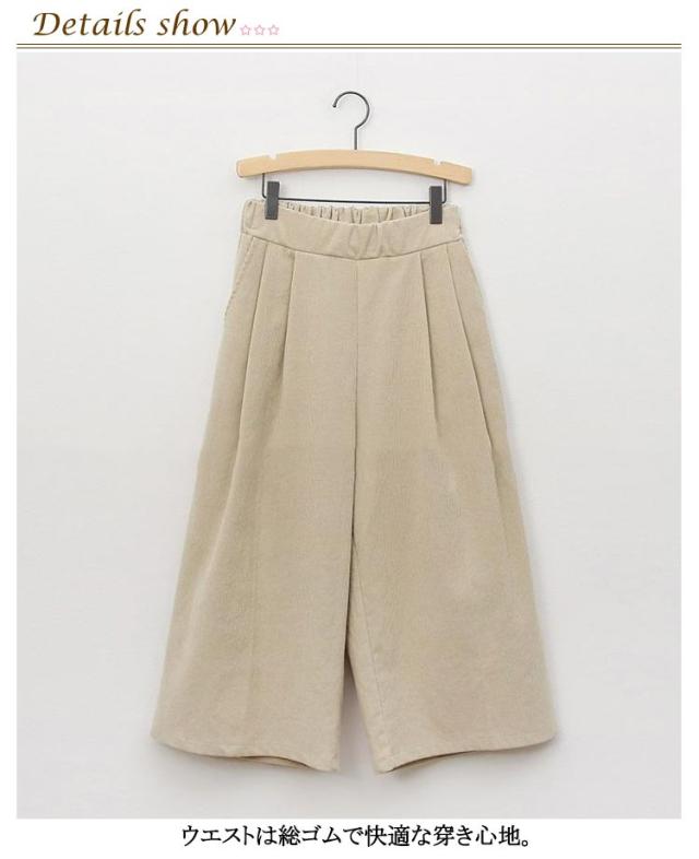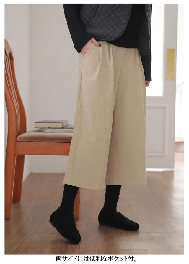 パンツ ポケット付き ワイドパンツ 七分丈 秋冬 下着 きれいめ コーデュロイ ワイド コーデュロイパンツ コーデュロイ スカーチョ ロングパンツ シンプル クロップトパンツ 7分丈 オーバーサイズ ウェストゴム あったか 大人 無地 体型カバー