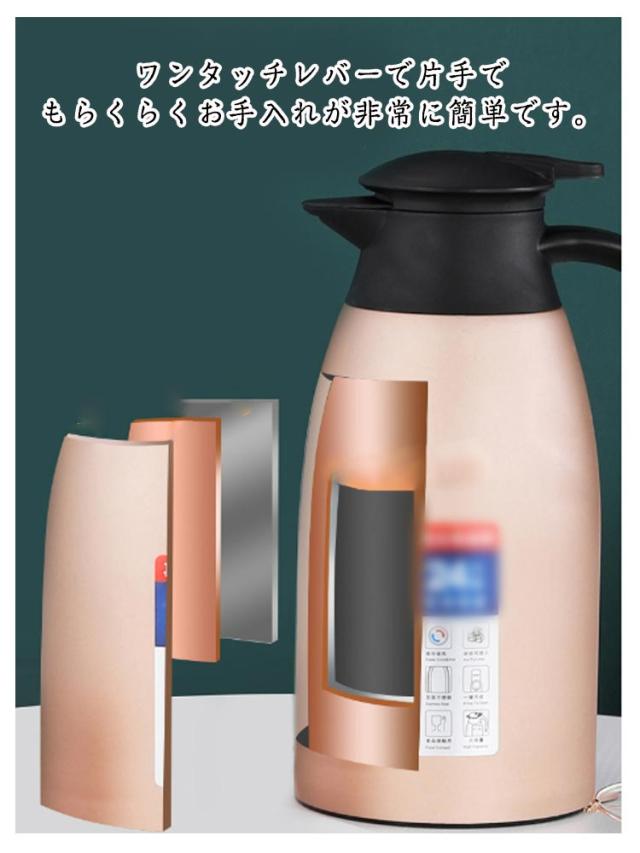 | 【2000mlの大容量】【3層構造】【24h保温】【ワンタッチで使いやすい】 耐久性に優れて、長持ちの保温瓶です。 人間工学に基づいたおしゃれなデザインで使いやすいです。 一回のお湯を沸かすと家族全員の飲み水の需要を満たすことができます。 頻繁にお湯を沸かす必要はなく、時間を節約できます、シンプルでユニークなデザインで、キッチンやデスクトップの装飾としても使用できます。 ワンタッチレバーで片手でもらくらくお手入れが非常に簡単です。 家庭用、喫茶店、ドリンクショップに最適です。お茶、コーヒー、水、ミルク、ジュースなどの保存用の卓上ポットとして大活躍です。 | |