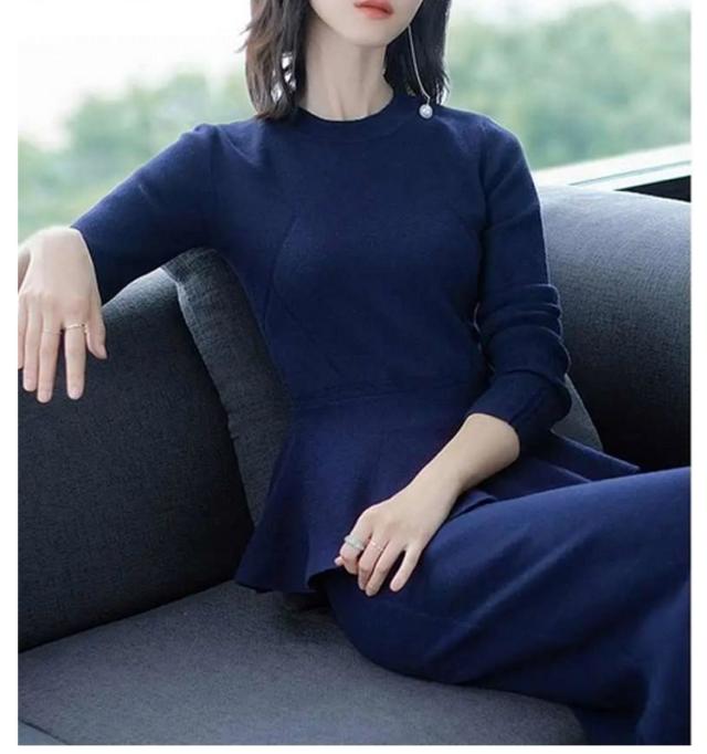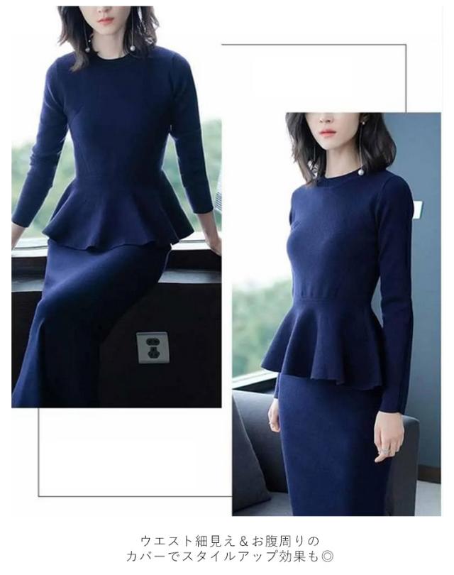 ペプラム 無地 セーター レディース ニット トップス ニット 長袖 クルーネック 羽織 チュニック ニットセーター ギャザー ニットトップス スタイルアップ ヘムライン ペプラムトップスリブニット 長袖ニット ペプラム 切替