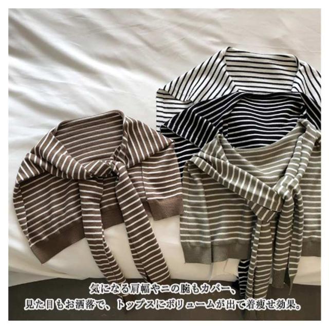 フェイクカーディガン 羽織り ストール ニットショール 肩掛けニット 肩かけニット つけ襟 カーディガン風 薄手 ショール レディース ニット ストール ボーダー柄 小物 通勤 冷房 トップス 送料無料 ホワイト ブラック ブラウン